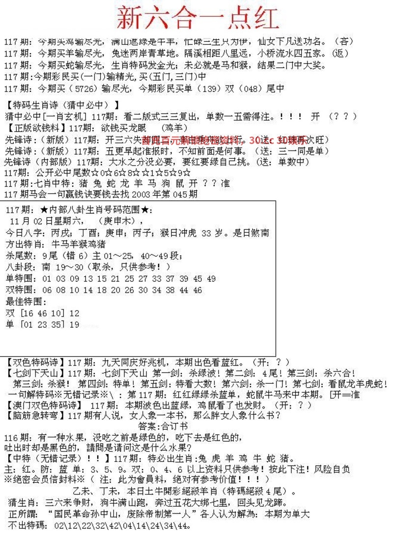 117期:合数单双╠合双合双╣开:虎04准
